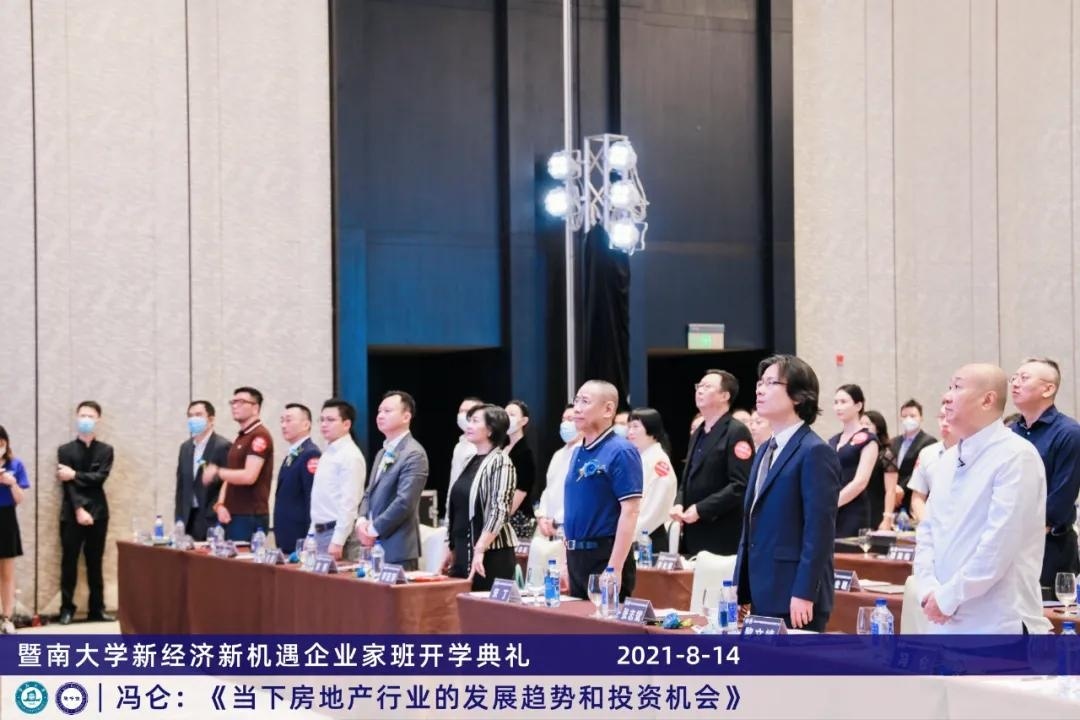 一入暨南门,终生暨南人。全场肃立,学员们举行了庄严的佩戴校徽和奏唱校歌仪式,伴随着校歌慷慨激昂的旋律,学员们共同展望未来两年的学习生涯。