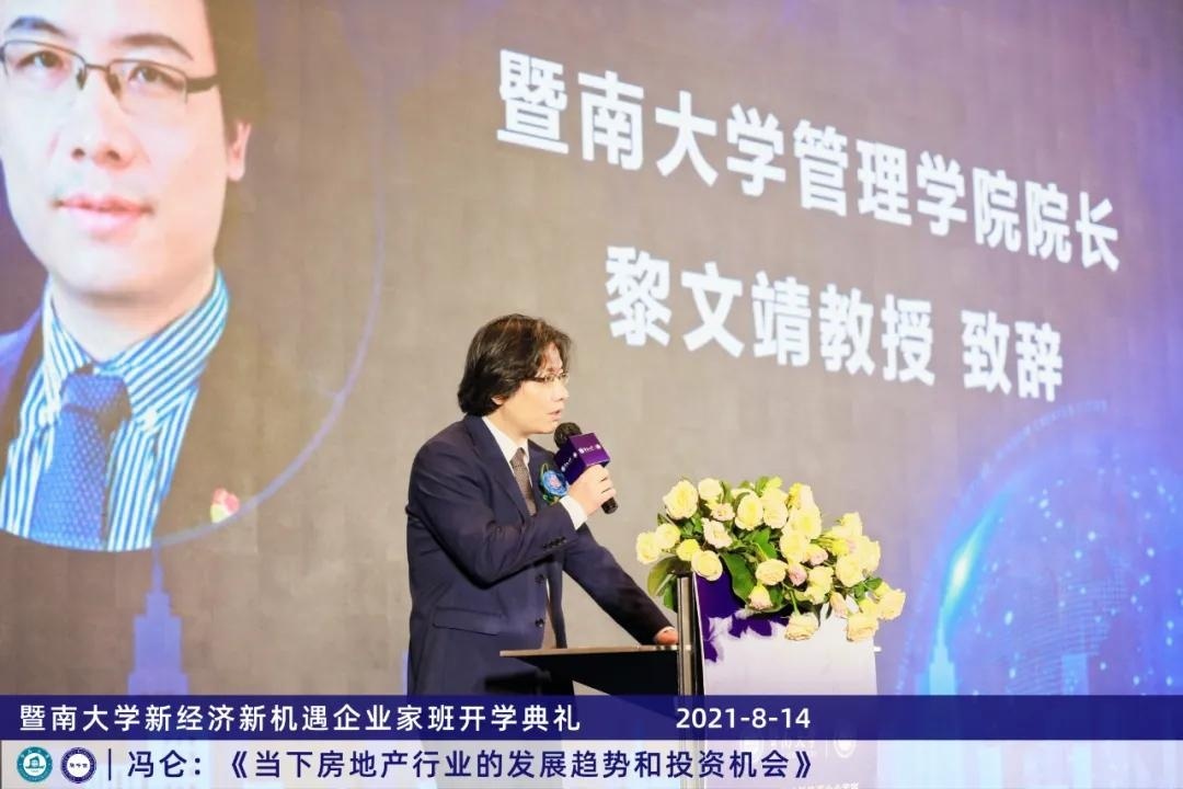 典礼伊始,管理学院院长黎文靖教授首先对到场来宾表示热烈的欢迎,并在致辞中介绍了及其商科教育的发展历程。是中国**所由政府创办的华侨学府,国家双的建设高校,在经过百年的岁月磨练,现已培养来自世界五大洲160多个国家和港澳台地区的各类人才40余万人,成为享誉海内外的“华侨**学府”。黎文靖院长表示,希望学员们加入暨大后,不仅能学到知识,更重要的是增加远见、学会思考,在这个瞬息万变的时代,不忘初心,砥砺前行!