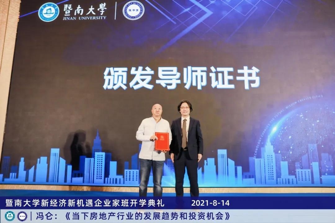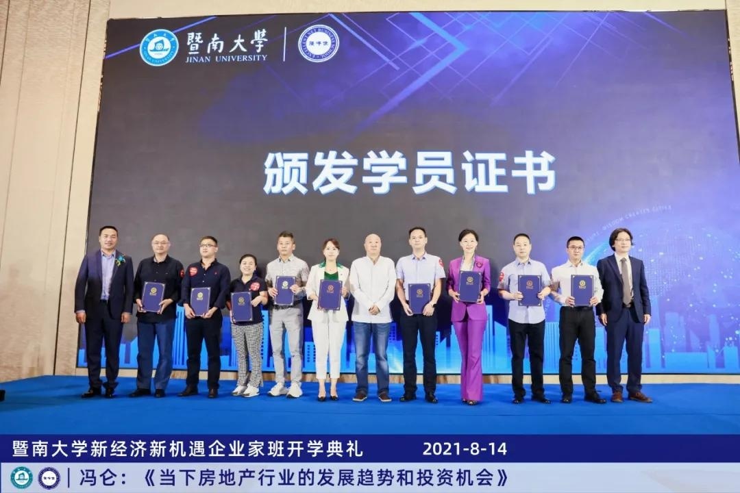 随后,黎文靖院长,冯仑导师,余安迪院长也上台为学员颁发学员证书!这一刻,意味着新一期的同学们正式成为了暨大的一份子。