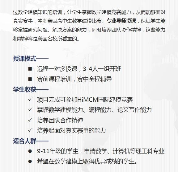 美国高中生数学建模竞赛(HiMCM)是美国数学及应用联合会(COMAP)主办的一项国际性的数学竞赛活动,是全球影响力**的中学生数学竞赛之一。