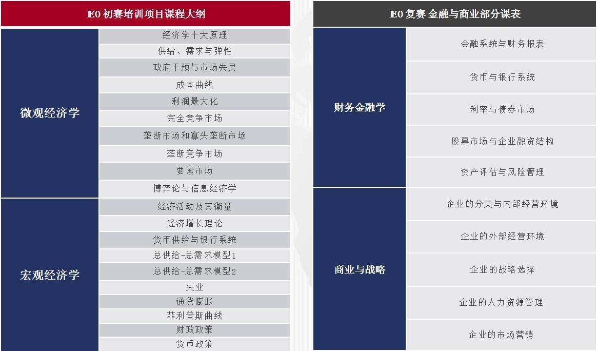 国际经济学奥林匹克 International Economics Olympiad 简称IEO,是全球13项科学类奥林匹克(International Science Olympiads)之一,面向全世界的高中生,旨在鼓励对经济学、财务和商业感兴趣的学生,激发他们用创造性的方式解决问题,培养未来中国经济和商业世界的引领者。
