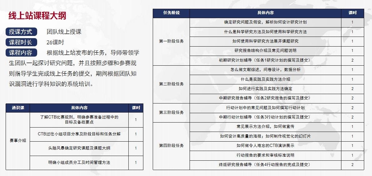 CTB一般设有线上站、全国站和全球站三个递进级别,线上站分为以下四大主线任务: