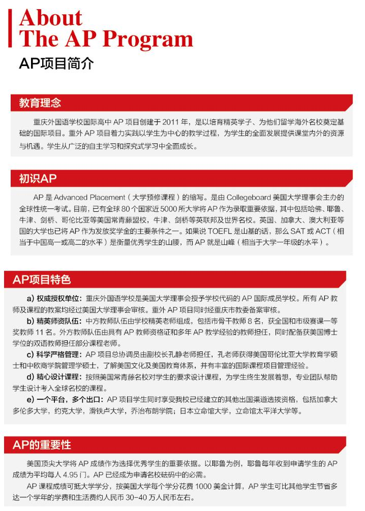 课程成功运行10年,开设多门AP课,是重庆第1所全日制、全外教、STEAM学科全覆盖的AP示范国际学校。