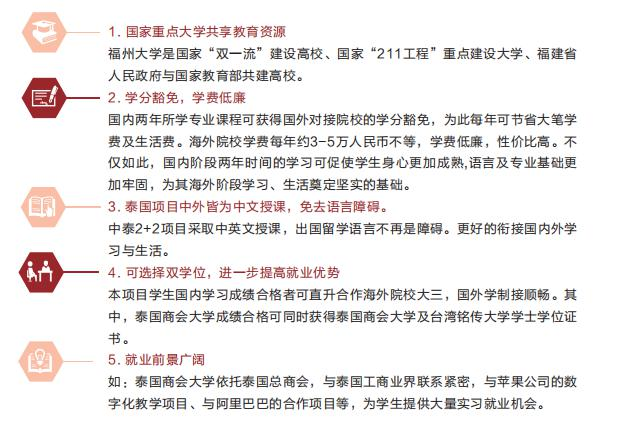 2+2国际本科项目在严保教学质量的前提下,尽可能的为学生节省留学的学习费用与留学时间。旨在为希望出国留学的学子创建一个坚实的平台, 打造一个良好的学习环境,为将来适应国外学习生活打下良好的基础并顺利过渡。与此同时,无论是从语言培训、学习技巧、还是国外独立生活能力等方面给学生提供指导与帮助,通过对学生个人能力、个人意向进行有针对性、有目的的培养,小班授课、科学辅导、因材施教,并致力于每个学生顺利毕业,顺利就业。