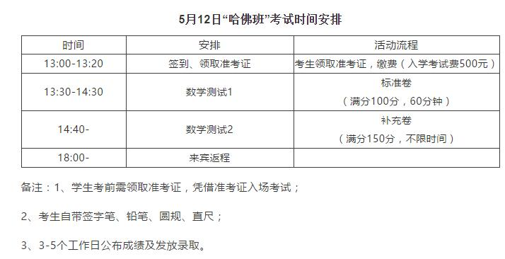 暂未参加轮入学考试的考生可在5月11日前进行登记。与招生老师提前参加轮考试。学校将遴选优秀学生参加5月12日“哈佛班”的考试。