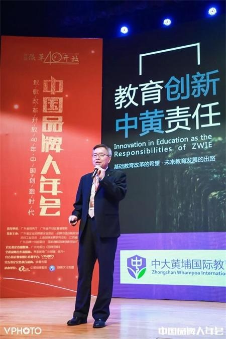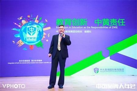 颁奖典礼上,崔总校作为十大责任品牌大奖发言代表,讲述了中黄的教育故事。