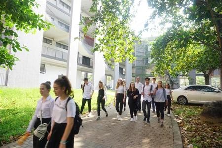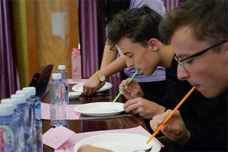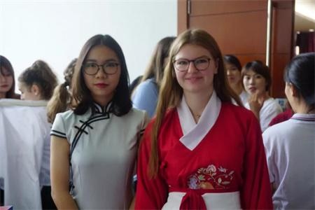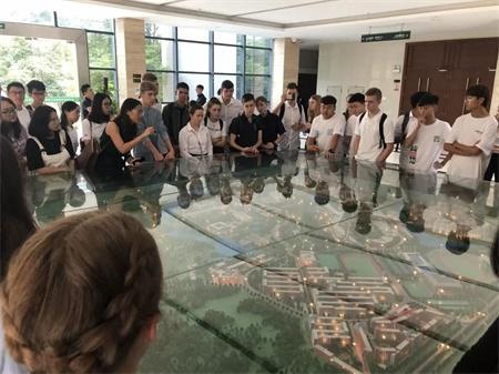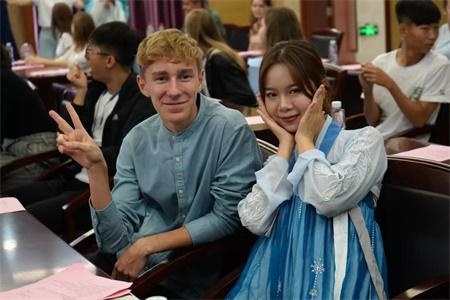 结对的学生,在彼此初见时还有点羞涩,但十几岁孩子的热情与活泼是化解陌生的情感,很快就能看到他们脸上荡漾起笑容。走近一点,能听到他们有的在互相自己介绍;还有的已在交流对彼此国家的认识;有的则已经面对面交流开始参观校园……