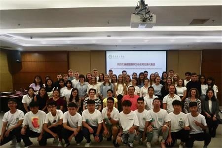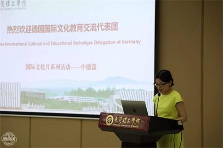 10月15日,由德国国际文化教育交流协会会长暨附属中文学校校长Jianghong Pu女士,副会长Barbara Plockn女士,以及来自德国法兰克福韦迪学校的教师代表、30名学生组成的德国国际文化教育交流代表团到我校参观交流,我校副校长杨敏林、我院院长王际辉、院长助理郝丽霞等教师以及国际本科学生隆重接待了交流团一行。