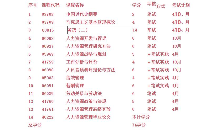 四、学历层次和规格本专业为高等教育自学考试独立本科层次,其专业培养规定与普通高等学校本科水平相一致。在专科毕业的基础上,凡取得本专业考试计划规定的13门课程的合格成绩,思想品德鉴定符合要求者,颁发高等教育自学考试人力资源管理专业本科毕业证书。对符合条件的本科毕业生按规定由主考学校授予管理学学士学位。毕业经答辩未通过的,必须补做,不补做者不予毕业,补做合格的,可以获得本科毕业证书,但不授予学位。
