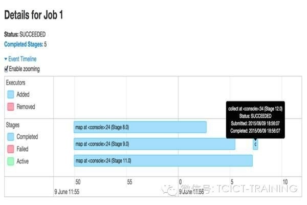 在不久的将来,Spark UI可以更理解一些更高级别的函数库语义,以提供更多相关细节。 同时,Spark SQL将与Spark Streaming一样获得类似的标签。而在Spark Core中,当用户查看RDD时,类似partitions数量、调用点、缓存率都将会被可视化。