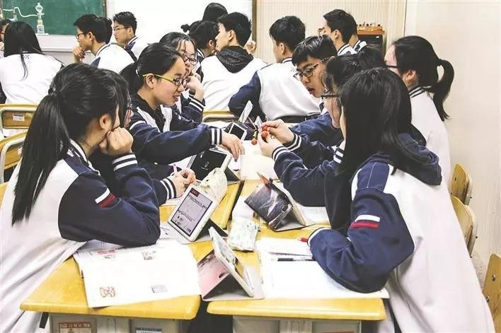 “青岛二中最初的翻转课堂没有引入‘互联网+’,由于课下无法将知识传递到位,导致课上提供个性化指导效果不显著。2013年青岛二中开始全面实施‘互联网+教学’模式变革,真正改变了学生学习方式和教师教学模式。”青岛二中副校长严贤付表示,全校学生每人一部Pad,上面有老师们录制的网络教学视频资源,形成富有学校文化特色的网络课程,学生们课下可自行选择各科教学视频学习知识点。青岛二中摒弃传统主导式的讲课模式,更加注重知识的应用与拓展,给学生们提供个性化指导,课上增加探究式学习环节,使知识点内化到学生心中,逐步形成了独创的“生学为本、合作内化、师教为要、点拨升华”基于互联网的16字课堂教学原则。
