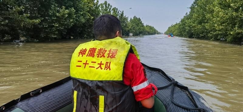 在23日凌晨两点左右马源博同学的神鹰救援队到达鹤壁浚县新镇新桥附近展开救援。24日又转移至新乡市牧野区曲韩社区展开救援,当天从洪水中救出了百余人群众。
