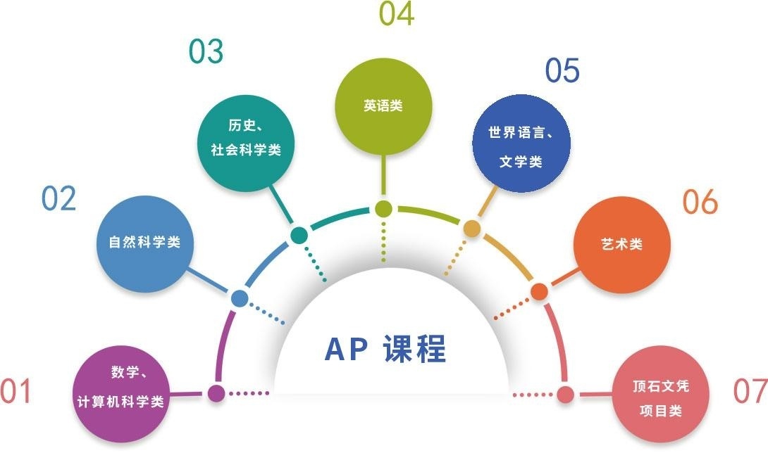 美国大学预修课程,一般称AP(Advanced Placement)课程,是由美国大学理事会(The College Board)在高中阶段开设的具有大学水平的课程。主要适合计划在美国就读本科的高中生学习,在全世界范围内(包括美国本土)均可授课。AP课程主要包括7大类共38门学科: