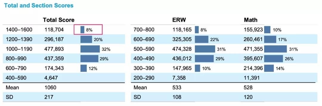 调整好心态,稳住1400+,冲进1500+根据官方统计,全球范围内,总分位于1400-1600区间的考生占比为8%,共计118704人。这意味着一个考生如果STA考到1400分,那么他/她就挤进全球所有考生的前8%了。