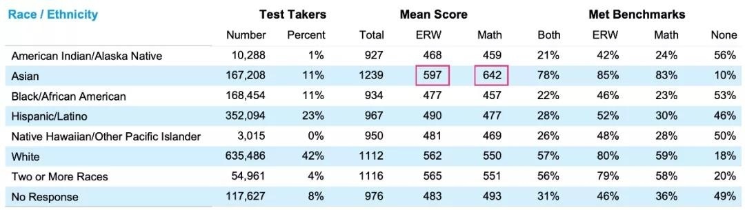 平均分上升,亚洲考生领先,竞争仍然激烈在考试人数减少的情况下,SAT考试总体平均分由2020年的1051上升至今年的1060。其中,亚洲考生的平均分仍然领先,由2020年的1217上升至今年的1239。平均分的计算包含了每一位考生的成绩,无论是理想的成绩还是不理想的成绩,因此平均分的数字本身不是重点,平均分的上涨值才是重点,亚洲考生平均分上涨的22分说明了竞争的激烈,各位考生就一定要重视自身实力的上升,继续努力拔高自己的SAT成绩,正确在日益激烈的竞争中脱颖而出。