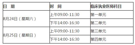 二、2019年临床执业医师医学综合笔试全国统一考试时间为8月24日和25日: