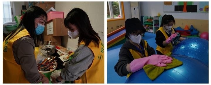 师生志愿者们分组进行了课堂教学辅助、园区环境整理等志愿服务活动,在活动中拉近了和“星宝”们的距离。三叶草儿童康健园相关负责人向师生志愿者们介绍了园区的运行状况和自闭症儿童的康复情况,带领大家参观了园区综合训练室、1对1训练室和游戏活动室等功能区。
