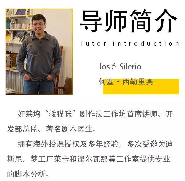 1、课程介绍:José Silerio先生主讲,知名编剧曹金玲老师助讲,四天密集的工作坊将利用“救猫咪”工作法把你的故事想法发展成为一句话大纲、十五个节拍及一个坚实的故事大纲。