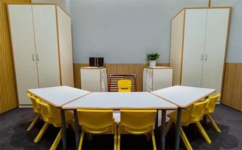 七田真早教是一家诞生于日本的早教机构品牌,其一直致力于在脑力开发的基础上,我们一直在以全人格教育为目标,用科学的方法、通过爱与感动、包容,来培养孩子的才能。与美式早教不同,七田真的课上是见不到动辄十几人的嘈杂氛围以及大运动项目的。取而代之的是最多6人的贴心小班制,每位宝宝只能1名家长陪同。因为班内人数少,每个宝宝得到的关注、认可和鼓励就更多;以孩子为本激发内在潜能的空间自然就更大了。七田真早教在教学工具的设计上采用半包围U型设计,这种设计方式不仅能够让老师用平视的目光顾及到每个孩子,又能各位宝宝充分参与到课堂中。在教学环境的设计上采用暖白色的墙面进行搭配,简明大方而又不失温馨。在教室内部设计上,每间教室都没有过多的装饰,只有几张桌椅、几扇柜子,能够很大程度上降低宝宝好奇心,使其增强注意力。与此同时七田真早教也为各位宝宝和宝妈准备了母婴室与专门的洗漱区,配套设施全部采用进口装备,为各位宝宝和家长创造了一个爱、严格、信赖相融的成长空间。