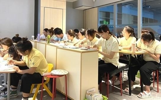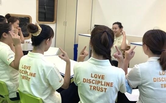 新老师正式上岗实习之前,要经过为期一个月的封闭学习。经过理论学习一课程学习--理论考试--7轮过课及听课观摩后,再通过全部考核,才能成为一名正式的七田真教师。