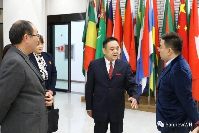 国际教育学院党总支书记马荣与我校创始人范犇亲切交谈华中科技大学国际教育学院副院长赵晓峰代表学校与武汉三牛中美中学签订国际学生生源基地协议