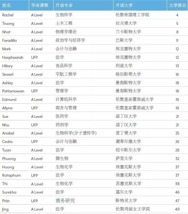 2019年我校东南亚毕业生升读走向 (部分)