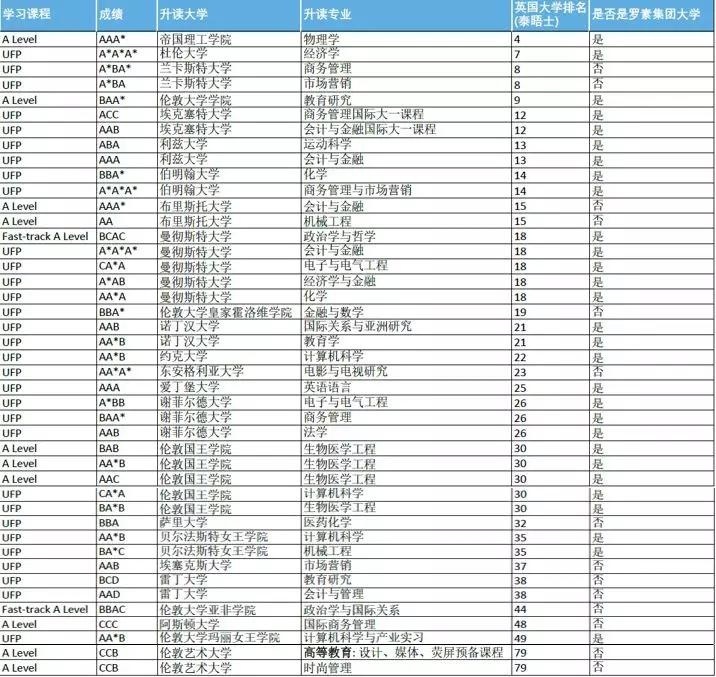 ✅ 超过50%以上的毕业生均升读至英国罗素集团大学
