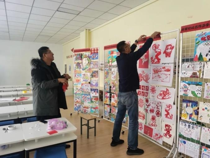 在京蒙合作的框架下,加强京蒙优质教育资源共享,北京市朝阳区芳草地国际学校世纪小学携手内蒙古自治区乌兰察布市察右后旗白音察干小学,一起为2022年北京冬奥会加油助威,特此两校携手举办“迎冬奥、齐加油”系列活动,活动内容有:绘画、手抄报、剪纸、书法作品展览。本次美育作品展是两所手拉手学校共同推出的,活动的目的是培养学生的爱国主义情怀,以及民族自豪感,两校师生共同为2022年北京冬奥会加油助威!我们之前进行了“迎冬奥 、齐加油”的系列体育、美育活动,通过线上和线下两种模式进行展示,增进两校学生之间的友谊!本次活动是在京蒙两所学校校长的大力支持,以及白一小各学科的老师们,还有支教的赵伟老师和主管音体美的陈峰副校长的进行了辛勤的布展。未来我们两所学校也会互相取长补短,在各个学科的教研、教育进行交流合作,把京蒙合作的教育资源共享落到实处。