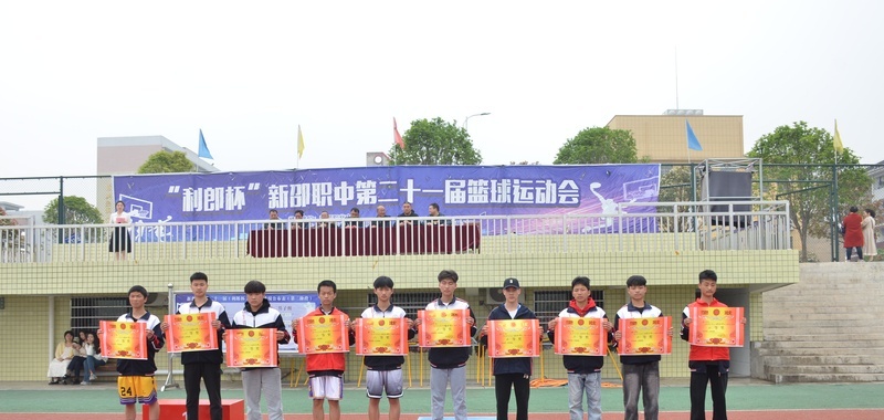 4月13日, “利郎杯”新邵职中第21届篮球运动会顺利结束,学校对获奖班级与优秀运动员举行了隆重的颁奖仪式。 来自学校10个专业的51支代表队、510余名运动员经过为期一月的激烈角逐,决出各个组别的名