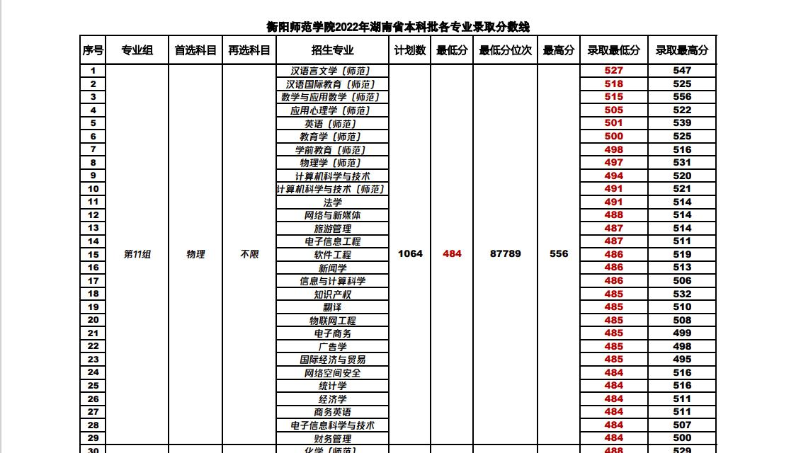 衡阳师范学院2022年各专业分数线是多少分?以下是整理的关于衡阳师范学院2022年各个专业的录取分数线,该数据来源于网络,仅供参考,详细内容可以查看该校招生官网确认具体招生信息,希望各位考生都能被心仪