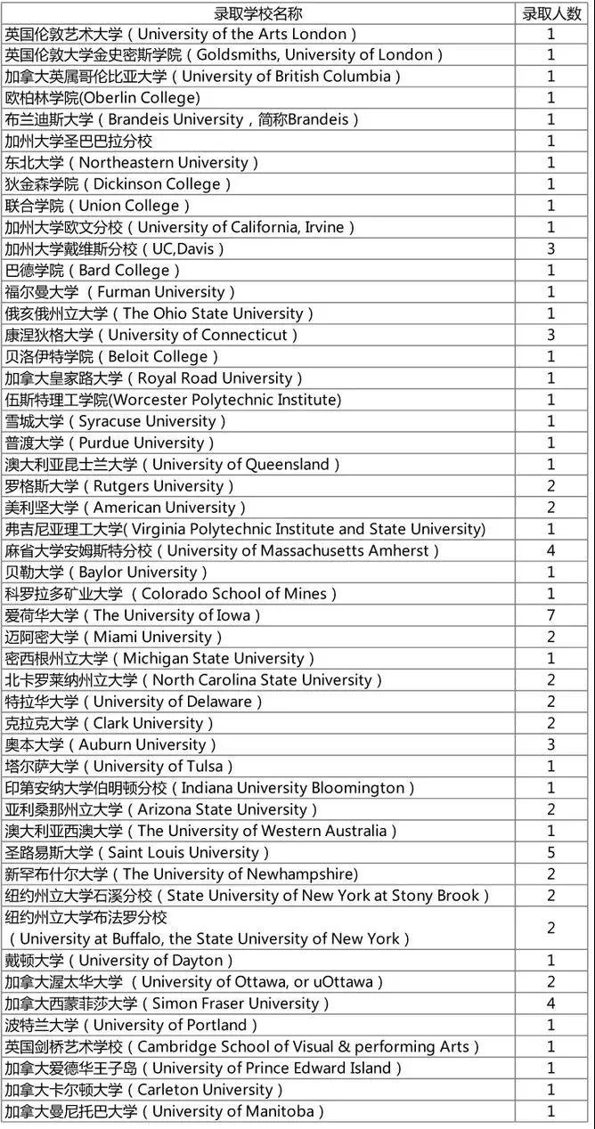 2017 年,我校首届毕业生,收到了来自加州大学欧文分校、加州大学戴维斯分校、曼荷莲学院、迈阿密大学、芝加哥艺术学院,马里兰艺术学院,加拿大西蒙菲莎大学、达尔豪斯大学等名校的录取,总额48万美金的奖学金。